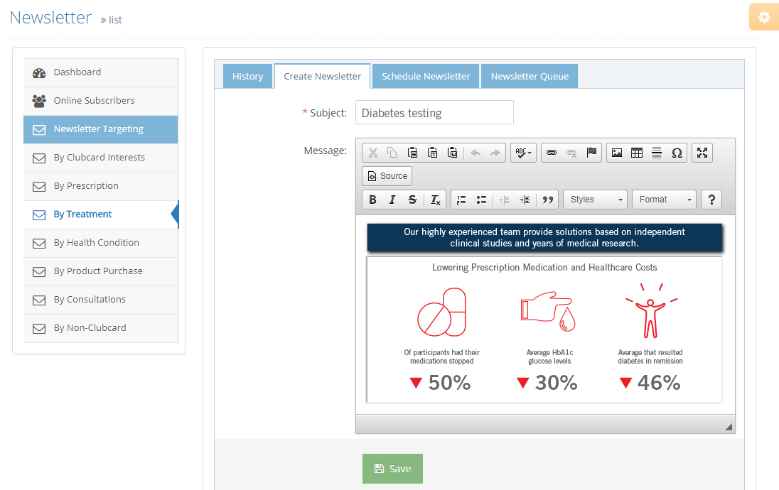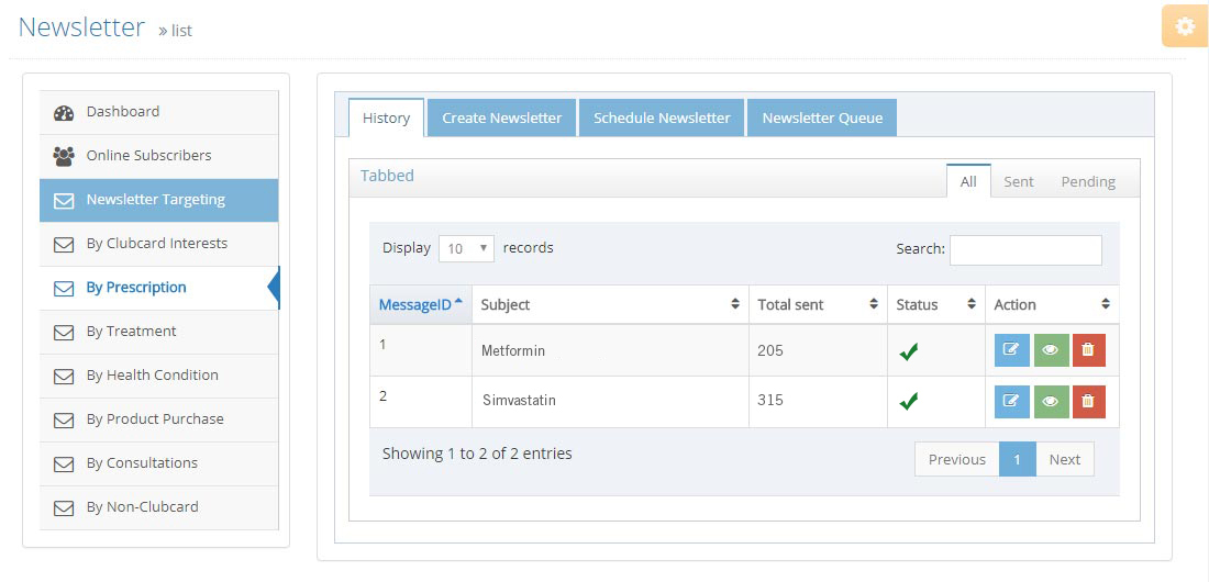 Our newsletter technology provides pharmacists with the opportunity to create dedicated healthcare social networks where they can exchange views, information, research and sell goods to a known audience demographic. The only service to 100% guarantee your audience is targeted based on their needs and issues