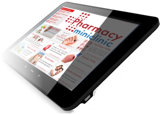 We provide more communication points to promote pharmacy prescription business instore than any other company. We provide dedicated equipment, technology and services to create attention grabbing instore prescription marketing. These services include instore media, loyalty systems, Mini Clinic pad, posters and point of sale materials. We help market prescription services with sound, vision and emotion connected to all your customers where ever they are instore.