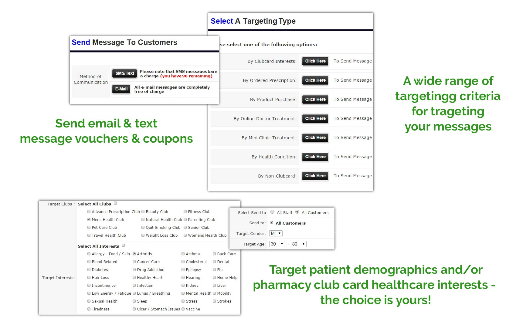 We empower the pharmacist to take their marketing to a personalised level by providing a loyalty service that can send offers and messages based on: